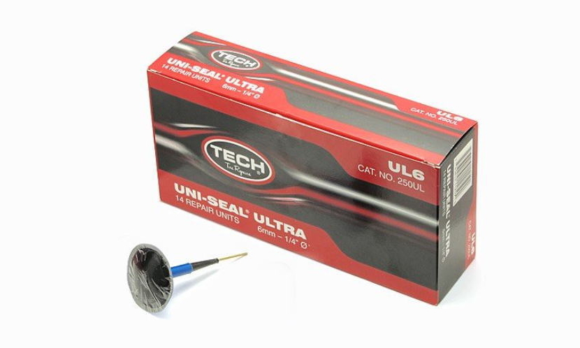 トレッド面にまっすぐ刺さった釘等でパンクしたまま走行していない車に限り、タイヤの脱着なしで外部からの修理が可能です。